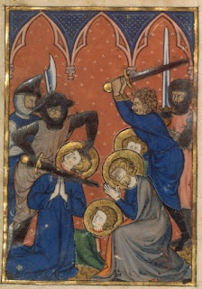 | Livre d'images de Madame Marie Martyre de saint Maurice et de ses compagnons Nouvelle acquisition française 16251 - BNF : f.86v Hainaut, Belgique : vers 1285 - 1290 |